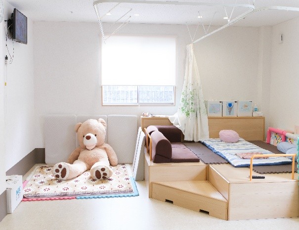 短期の際に広いスペースで楽しく過ごしていただきます。明るく快適に短期利用ができます。